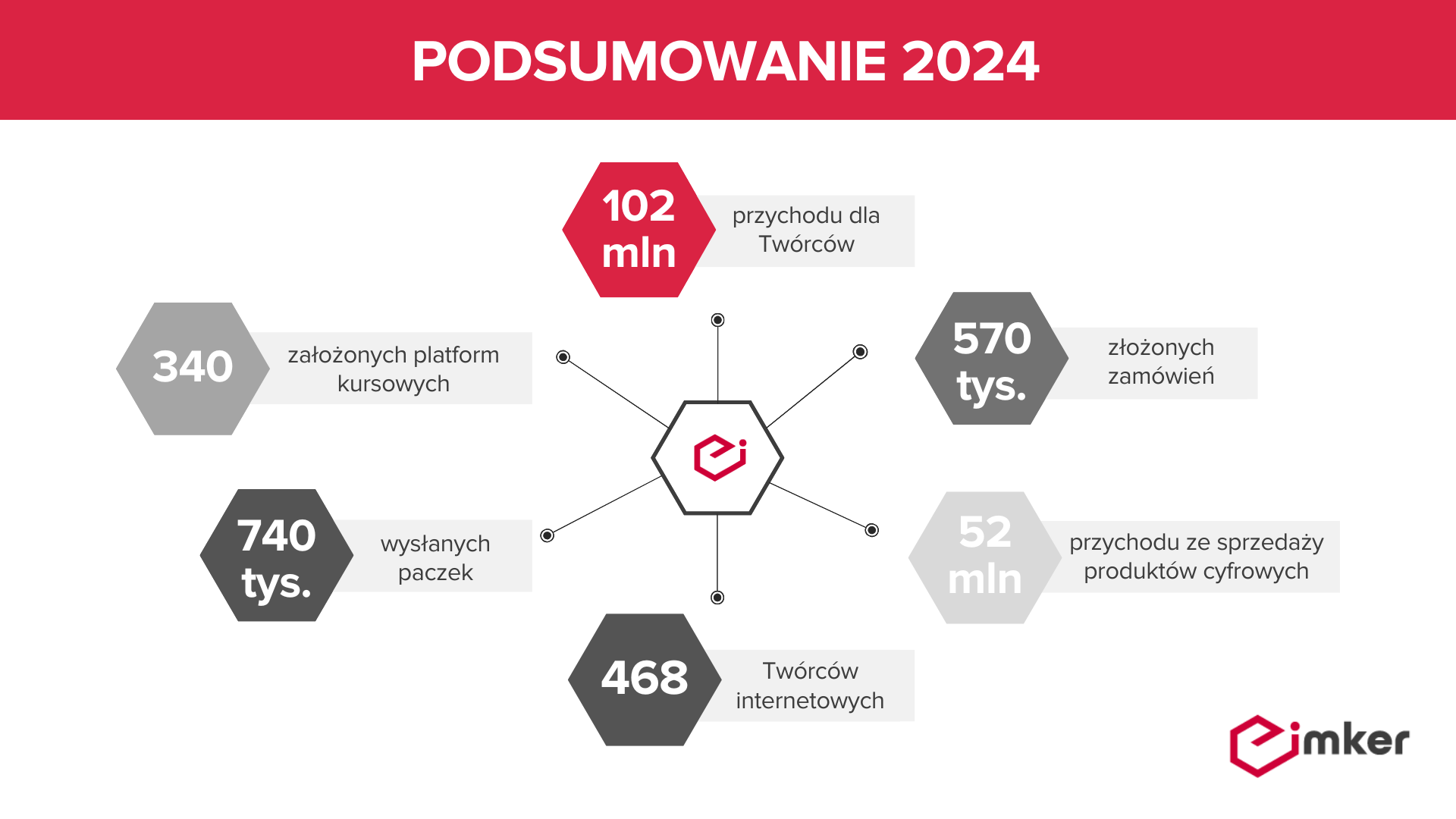 W 2024 twórczynie i twórcy internetowi korzystający z oprogramowania Imker odnotowali ponad 570 tys. zamówień na łączną kwotę 102 mln zł.