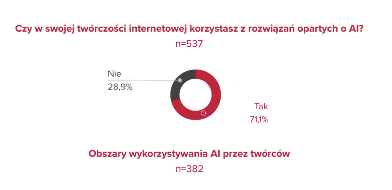 – Twórcy internetowi traktują AI przede wszystkim jako narzędzie wspierające ich procesy, a nie jako maszynę do zastępowania ich kreatywności – komentuje Krzysztof Bartnik. – To bardzo charakterystyczne dla tej grupy zawodowej: nowe technologie są mile widziane, o ile zwiększają efektywność i pozwalają skupić się na tym, co w pracy twórcy najważniejsze – oryginalności, jakości i zaangażowaniu. Automatyzacja publikacji czy odpowiadania na komentarze nie jest jeszcze powszechna, bo wielu twórców chce pozostać blisko swojej społeczności. Wyraźnie widać, że AI ma dziś funkcję zaplecza – jest pomocnikiem w przygotowaniu treści, ale nie zastępuje ich autorskiego charakteru.