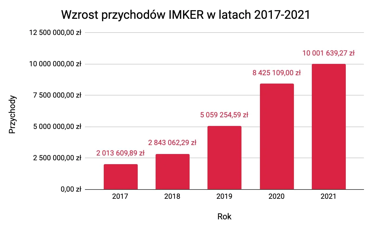 Zmiana formy prawnej podyktowana była znaczącym rozwojem firmy. – W ciągu pięciu lat nasza firma z sześciu osób rozrosła się do ponad 60-osobowego zespołu, a przychody wzrosły pięciokrotnie. Struktura i zasoby firmy rozwinęły się do tego stopnia, że przekraczały możliwości funkcjonowania w formie jednoosobowej działalności. Dodatkowo spółka otwiera nam nowe możliwości pozyskiwania kapitału na rozwój – wyjaśnia Krzysztof Bartnik, założyciel i prezes IMKER.
